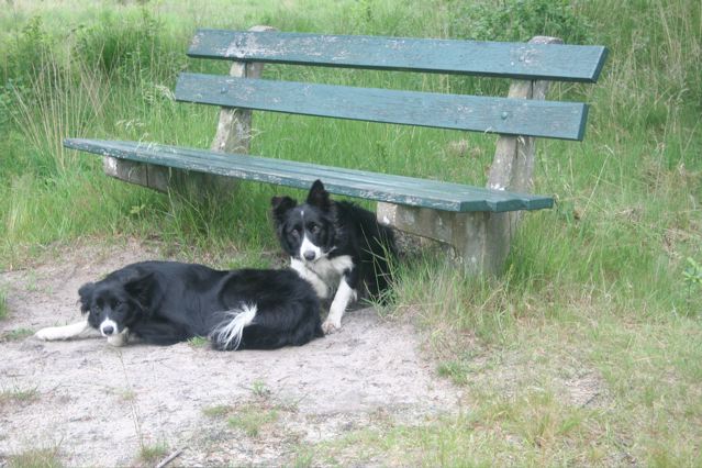 Het staat op een mooie herdershei die klein is en overzichtelijk. Vanaf het zonnige bankje kun je precies zien waar de honden lopen, en af en toe fluit je eens wat naar ze terwijl je een kopje koffie zet. Dacht ik.