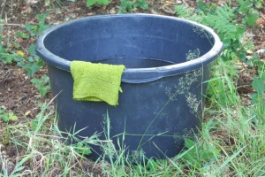 In de schemering een regenwaterbad genomen.